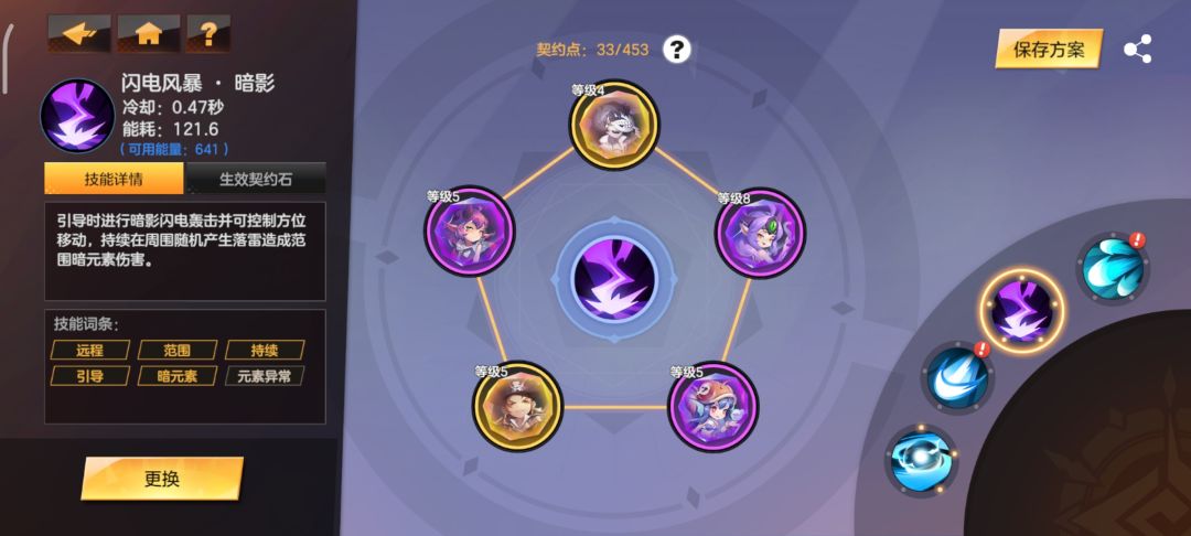 核心技能,装耗能涌动,炮弹支援,广域扩散,元素异增,高阶暗影