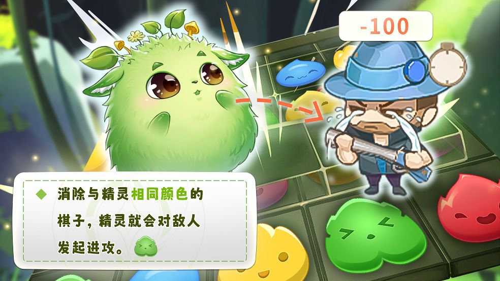 在在守护关卡中消除与精灵相同颜色的棋子,精灵就会对敌人发起进攻。发起进攻技巧如下:
