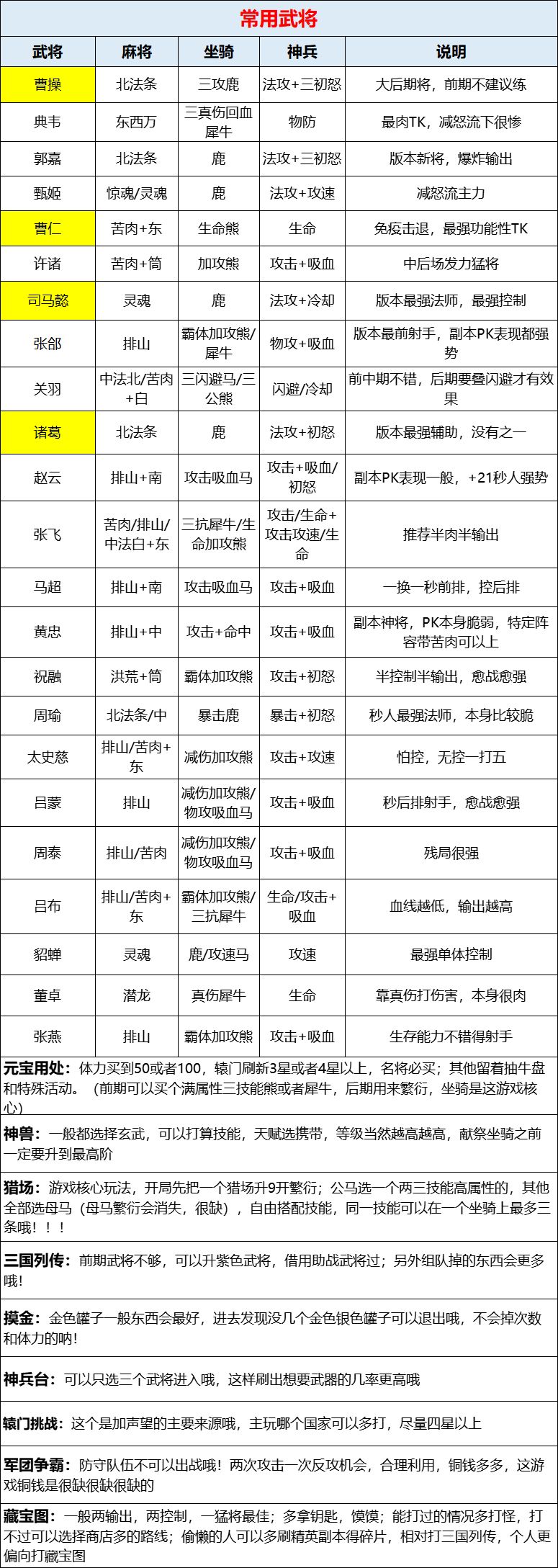 常用武将搭配攻略&系统玩法攻略