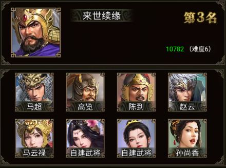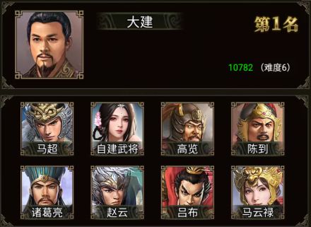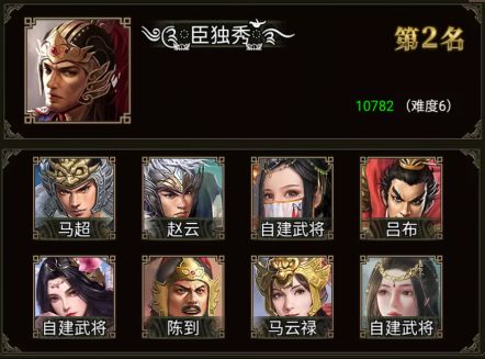 马超、赵云、吕布、陈到、马云禄、太史慈、高览和三位自建武将