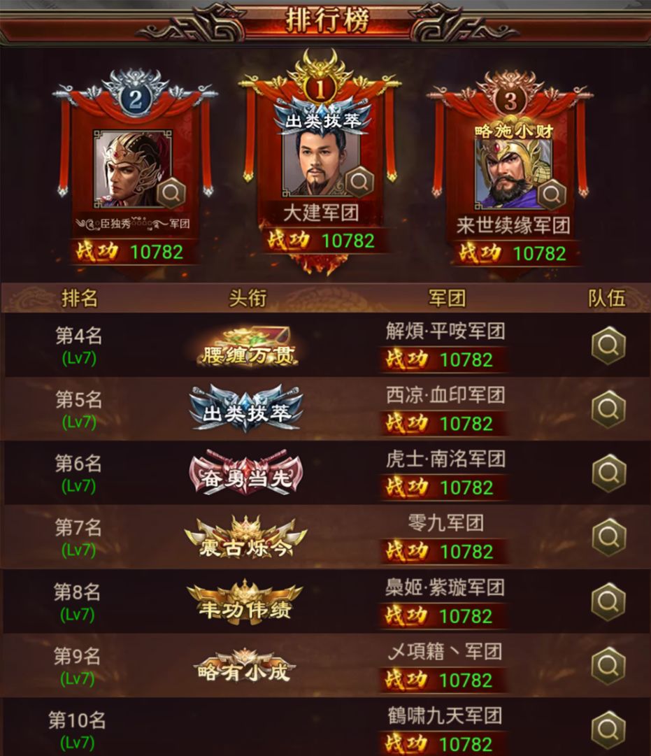 其中,“武将名 x%”代表该历史武将在本次战役的前十玩家中使用率为x%。