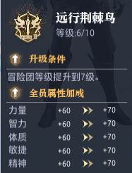冒险团可增加全角色属性加成: