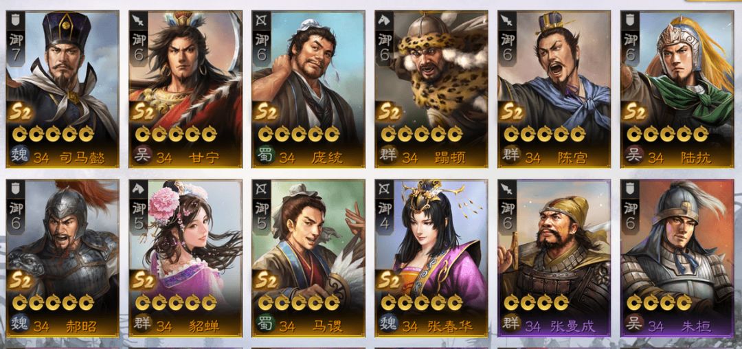 由于橙卡坦克的御值一般都在5-6,所以治疗、辅助的御值要尽可能的低,才能给主C留出更多的御值。这一阶段不需要用同一国家的武将,因为点不出同阵营科技。