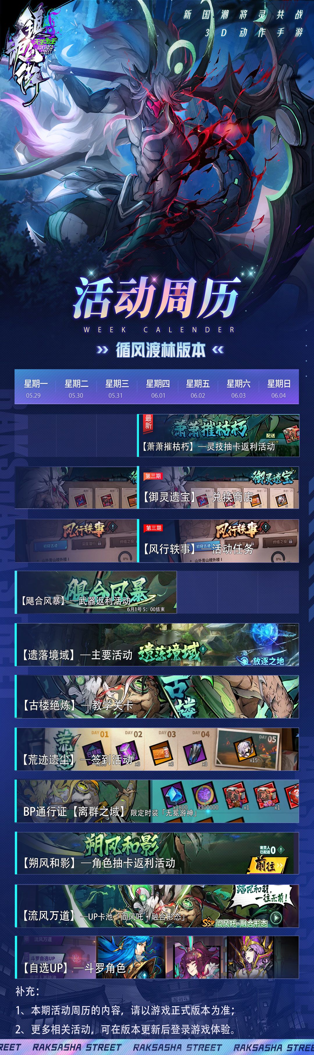 1、本期活动周历的内容,请以游戏正式版本为准;