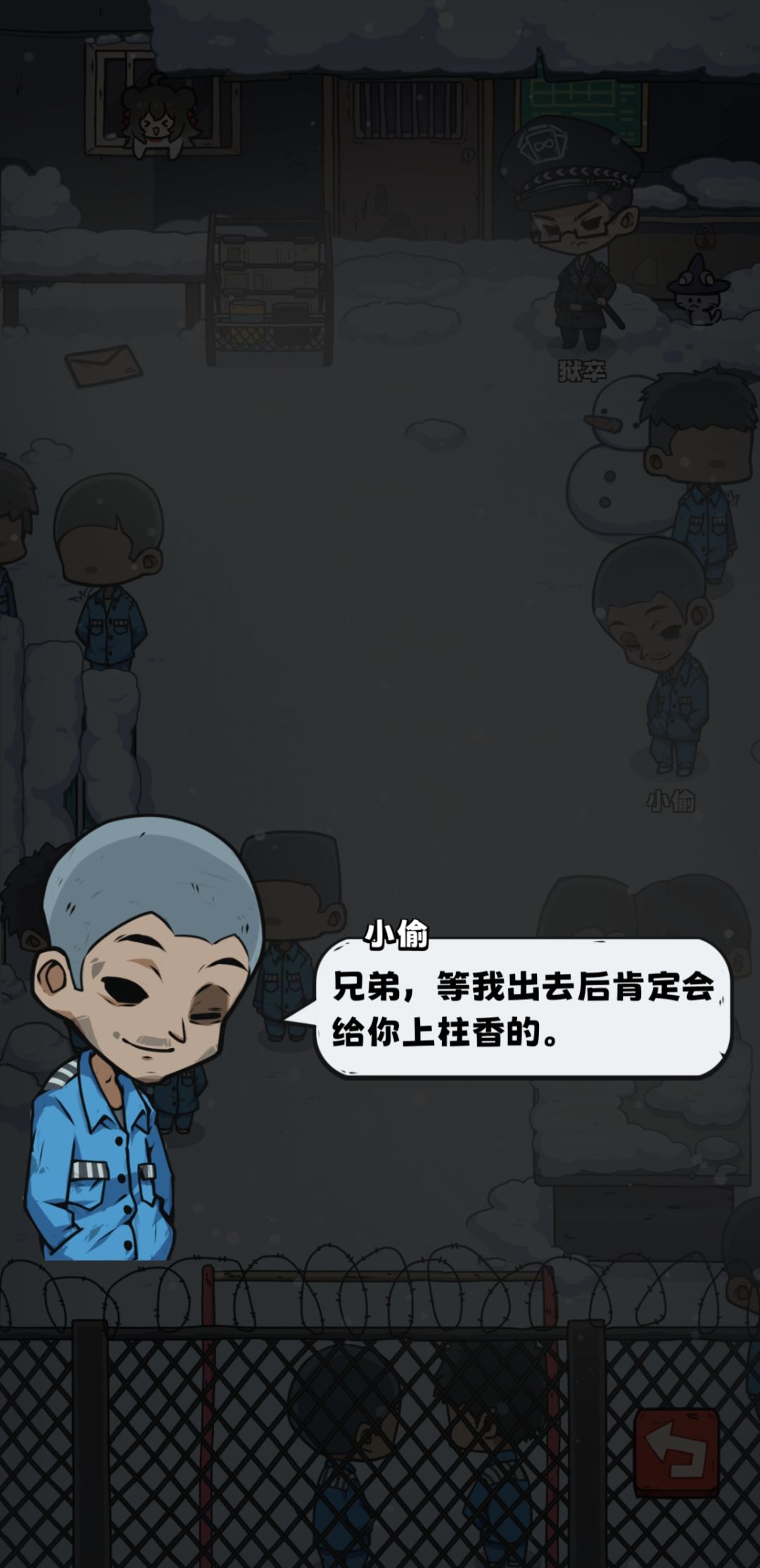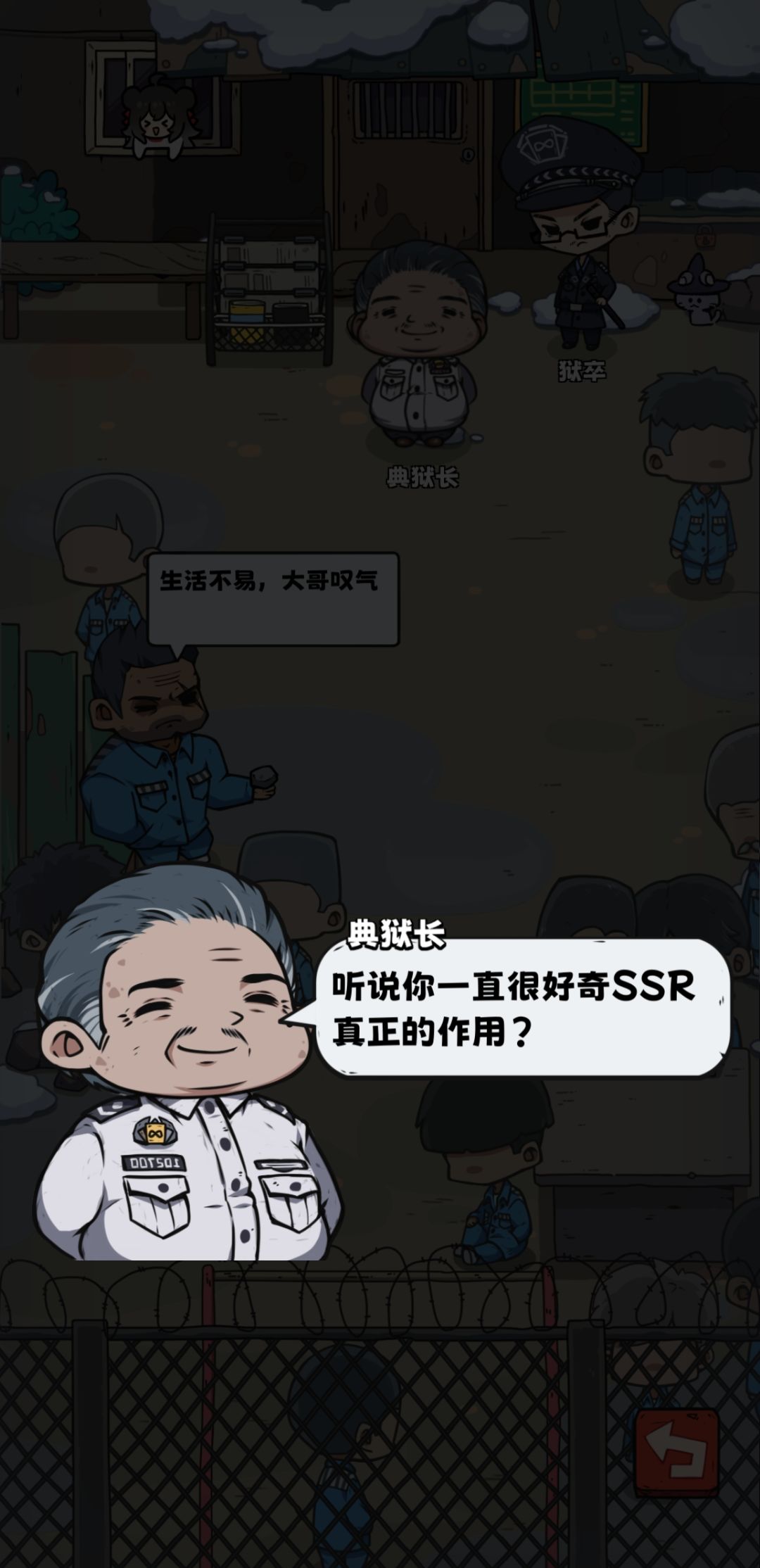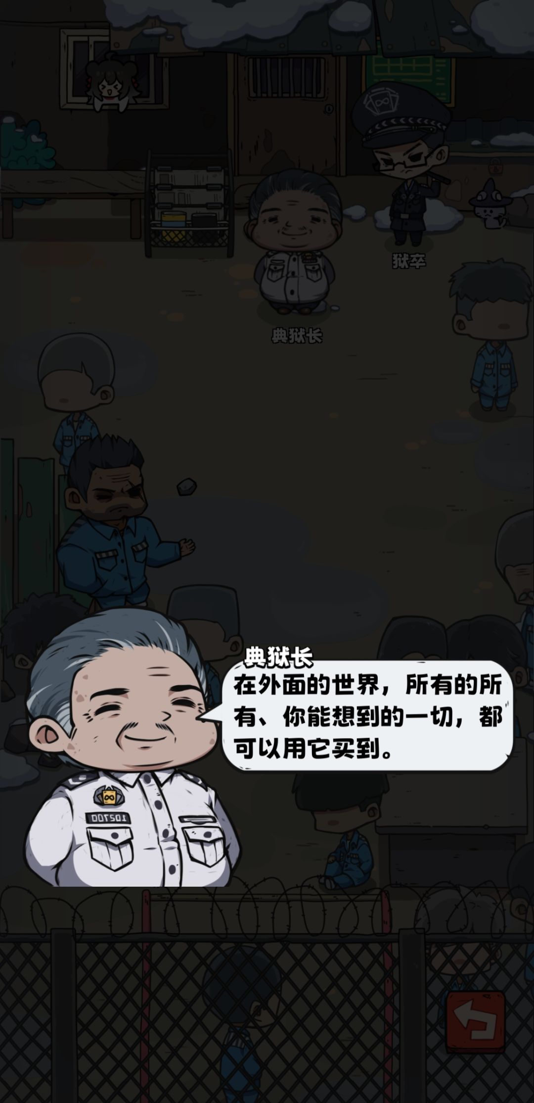 人物背景有点肖申克内味了,不过是给狱警打工的,从狱警的对话中也能得到一些线索。