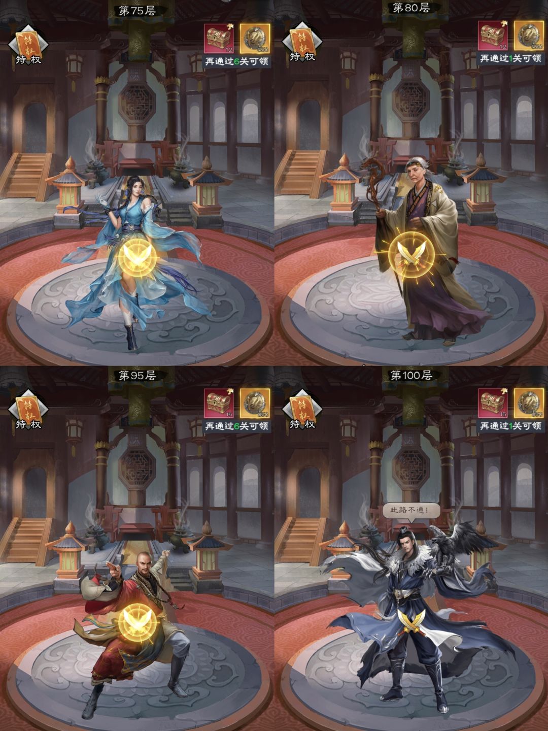 5、战力欠缺没能通100关的,提前做好目标关数规划,遇到需要的关键红色藏品提前留下。如打觉远需要的【太极心法】,如果太早关数就出现,后面不会再重复出现,就可以洗掉!