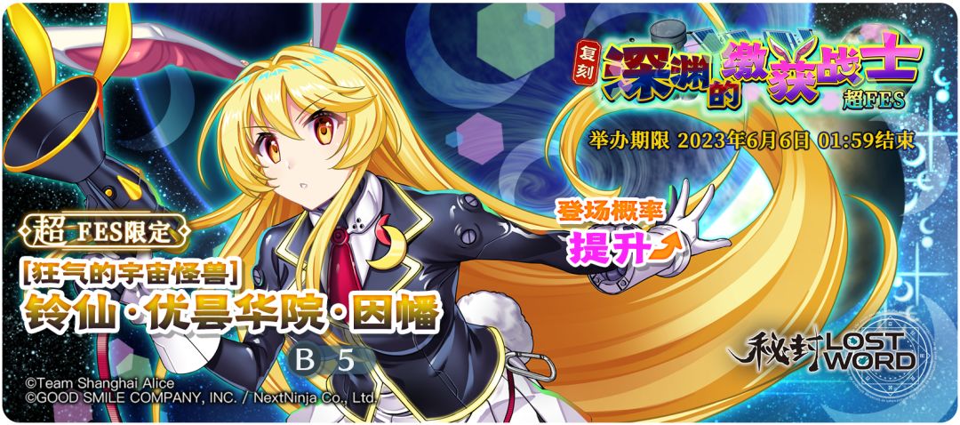 ✨角色概率UP:「狂气的宇宙怪兽 铃仙·优昙华院·因幡」登场概率提升的超FES限定祈愿!