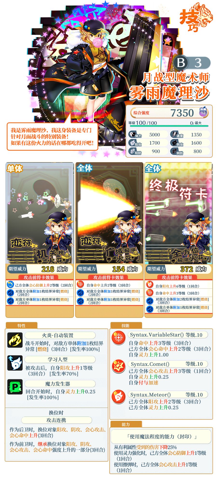 以下为伙伴技能及符卡介绍: