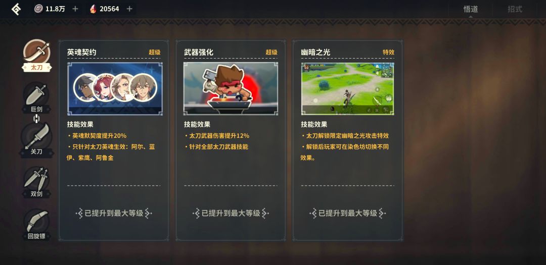 武器悟道功能上线,在这个功能中,冒险者们可以通过一定消耗道具[远古之印(刻痕之印)、晶魂、英魂碎片]增加英雄与你之间的默契值,从而获取一定的数值提升。
