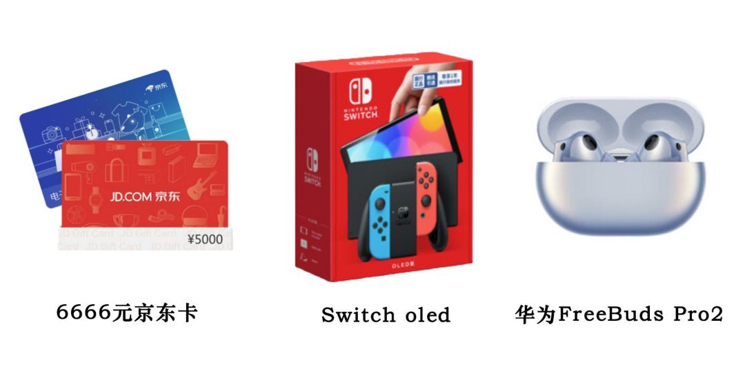 ==》6666京东卡大奖*1、Switch oled*2、华为FreeBuds Pro2*3