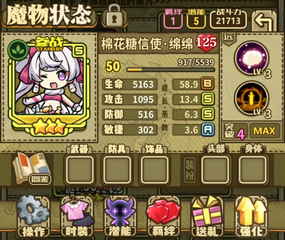 此贴暂时告一段落,但是我的旅途还没有结束,以后还是会继续升级,但是往后的等级需求经验实在是太多了,突破潜能需要的精华更是攒不够,只能随缘慢慢来,希望能在有生之年做到全魔物70![[嗒啦啦4_坏笑]](https://img-tc.tapimg.com/market/images/644c03a7456ff71d7b6b6a919b2d8817.gif)