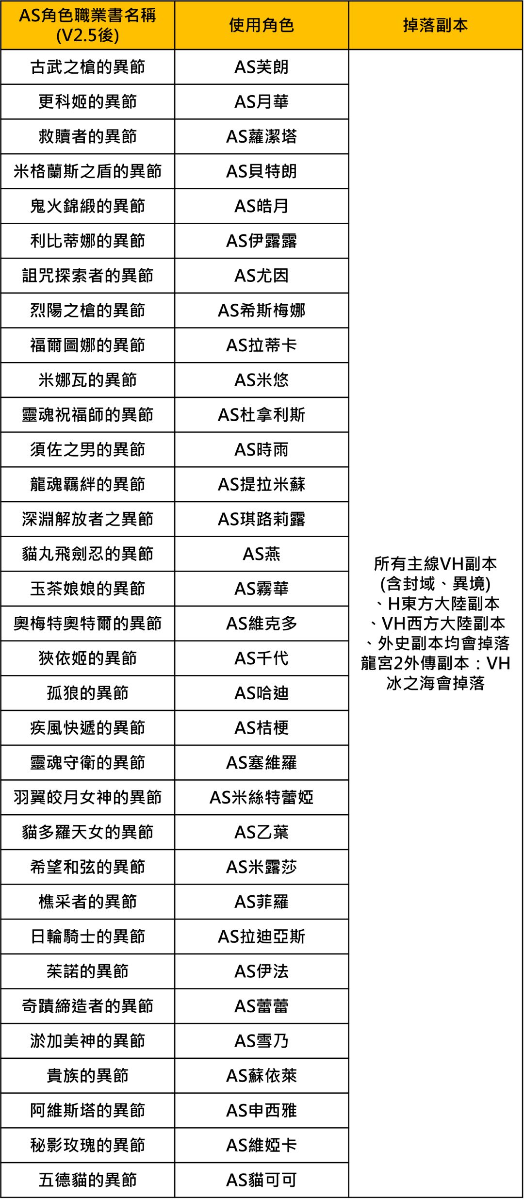 巴哈的最新(2023.5.29)表格。论坛里的版本太旧,爬出去找又不方便,就贴在这里方便自己也方便大家。