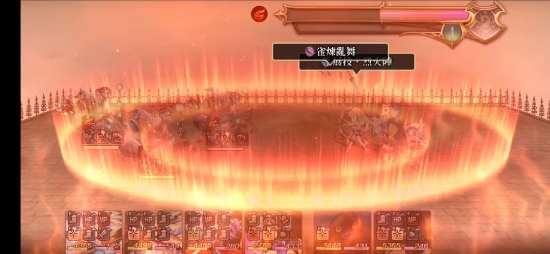 给予全体敌人3次先制的火属性斩攻击(特大1.6,最大倍率32.0)