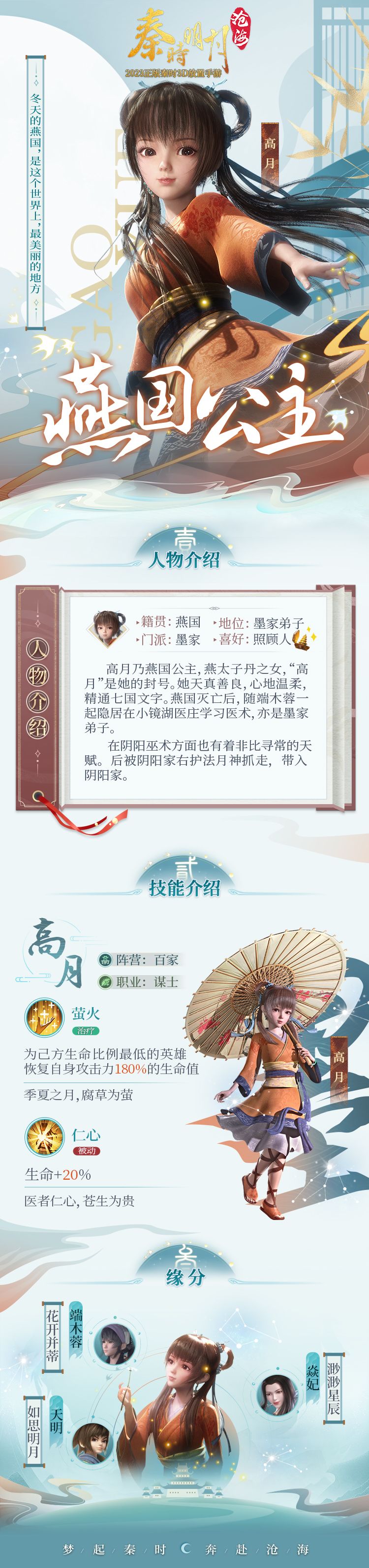 高月天真善良,温柔婉约,乃是燕太子丹和焱妃之女,封号“