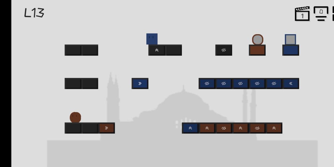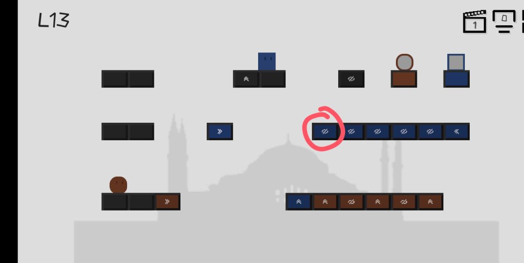 第13块方块要跳到这个位置(红圈圈圈起来的地方)不是很好跳,可以讲方块移动到p2的位置,然后一直向右移动即可