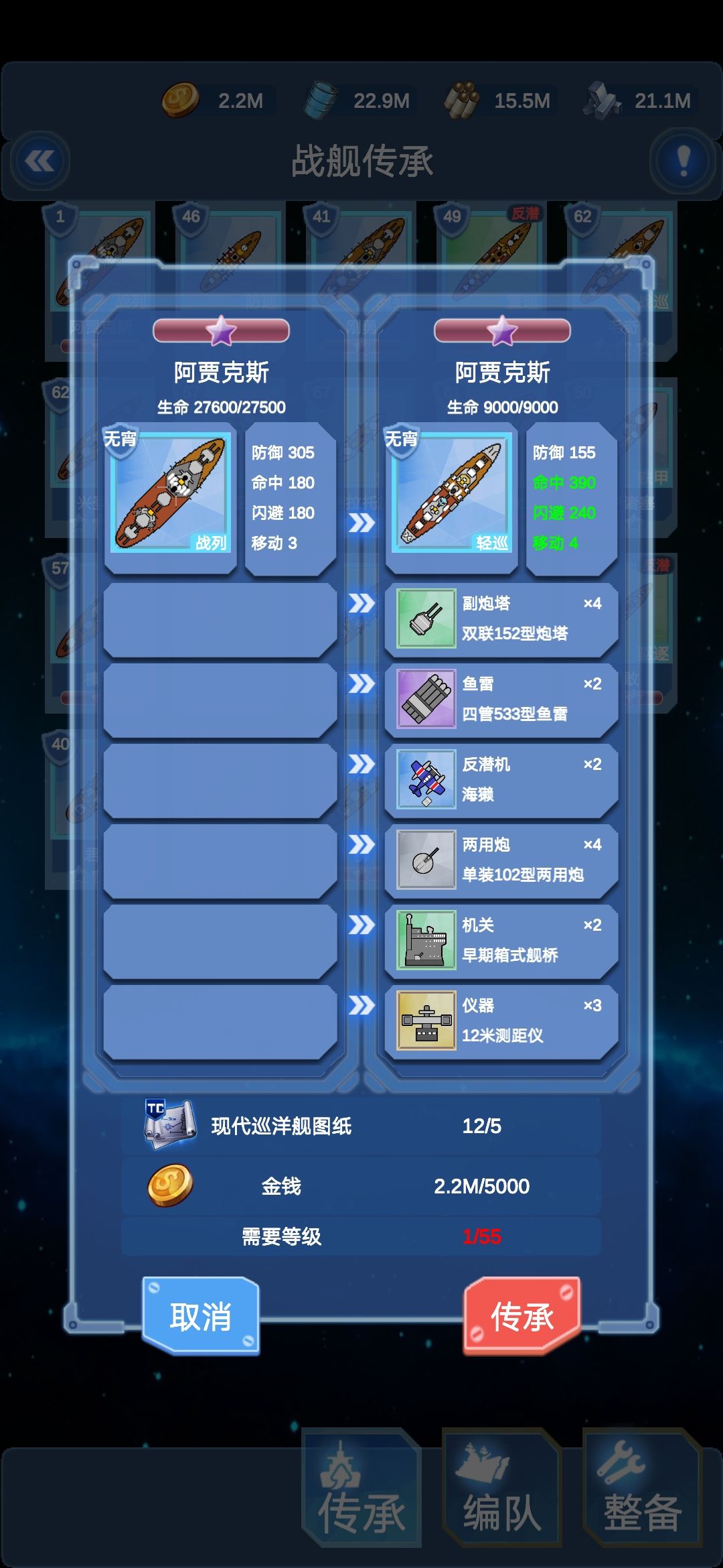 对比一下两艘战舰的属性,除了耗油少之外,烈阳的超战还不如战巡。感觉这就是花费新战的图纸传承战巡。