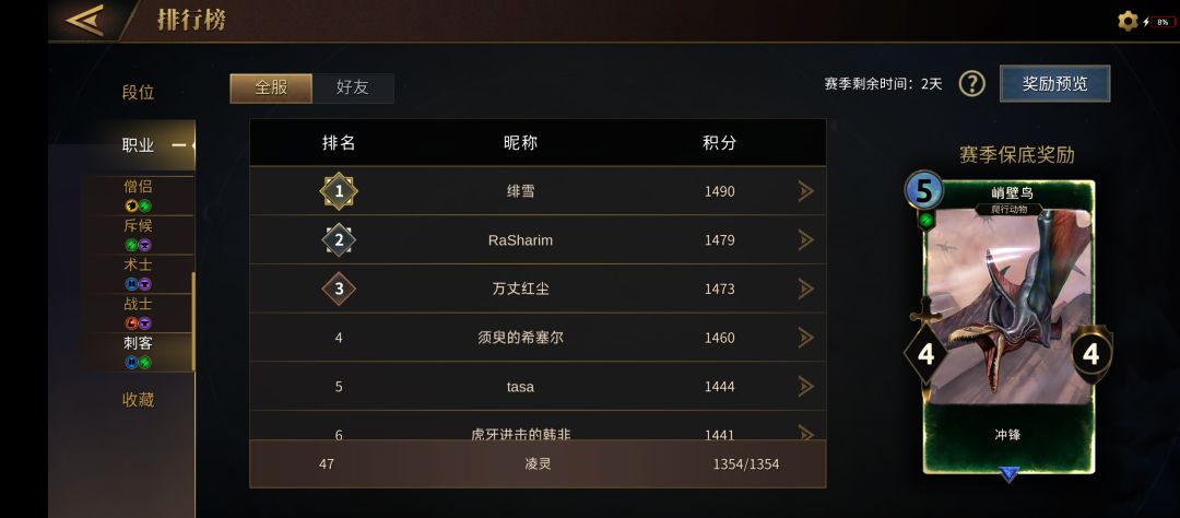 然后一看排位上好像没有多少刺客的牌(刚开始先着想上个传奇再发,然后第一天4段上到了三段,第二天打了一会从三段到了二段,然后又永劫去了)
