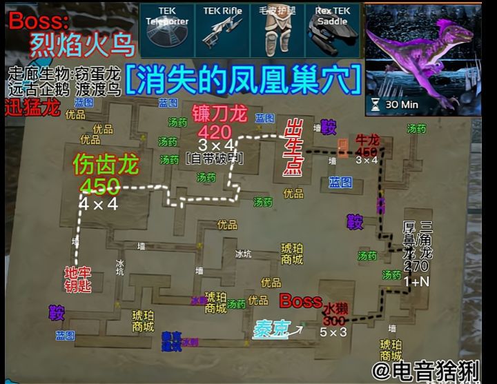 Boss烈焰火鸟:进去前最好存个档,因为里面都是岩浆,一碰就嘎了!可以在出生的那块地板上慢慢往前走,有一个小坑可以卡住位置,最后别忘了截取每周地牢任务。