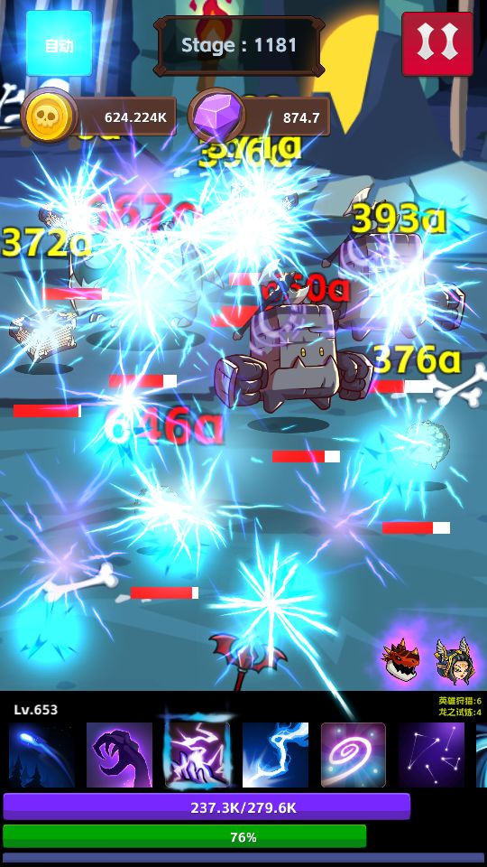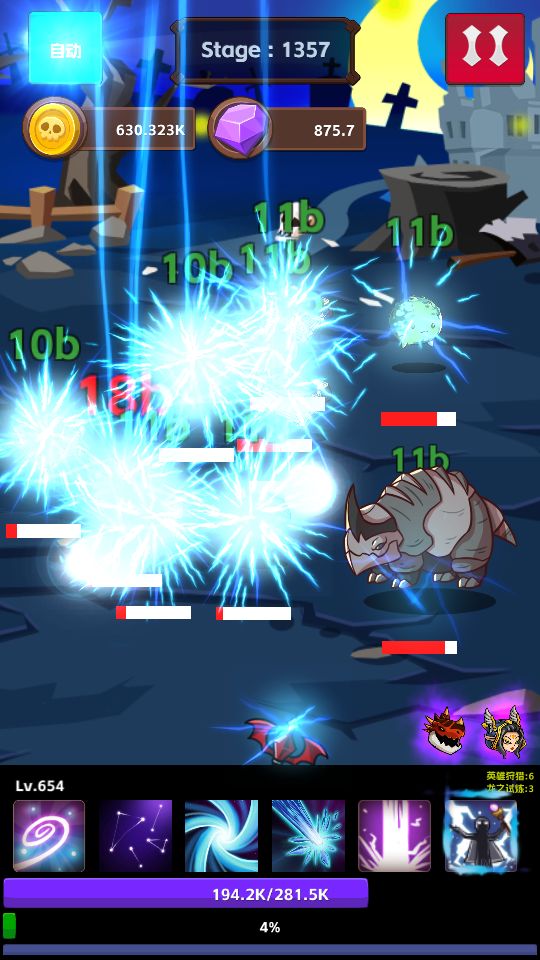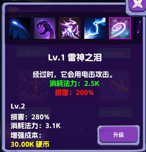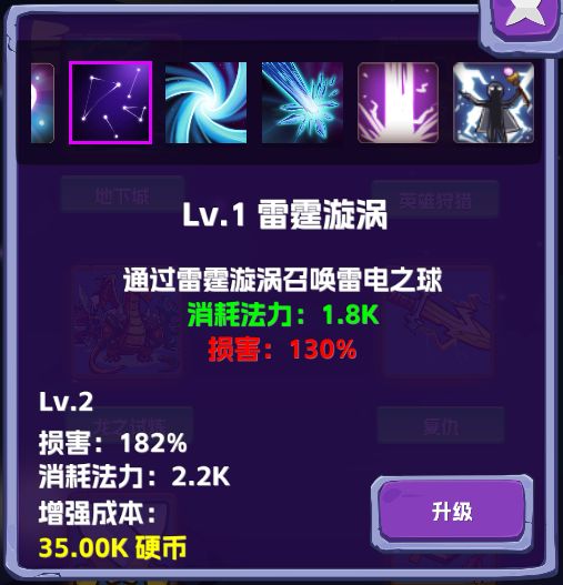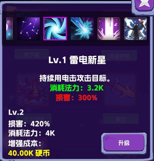 第二个技能,范围攻击,每个雷球会分裂出2个次球进行攻击,攻击力一般,比初级技能略强,可以做过渡技能。