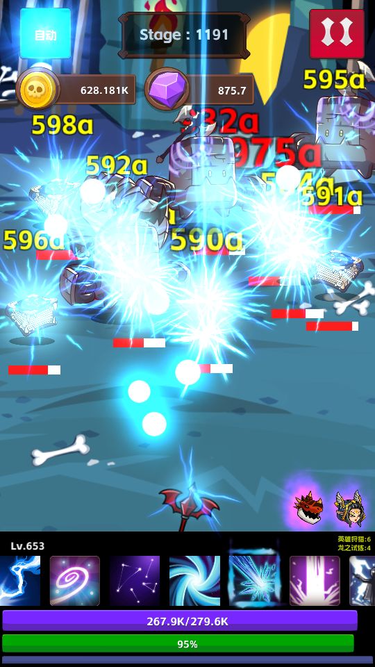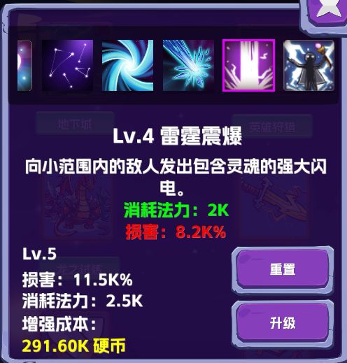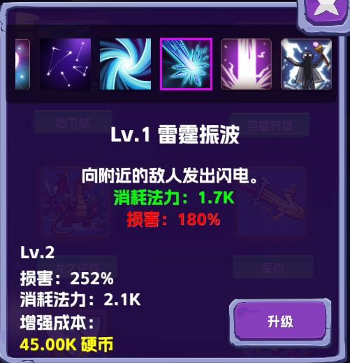 真正的强力群体攻击技能,每次攻击发射一个雷电球,雷电球会在屏幕内进行碰撞球轨迹运行,攻击能够触碰到的每个敌人,性价比最高的技能。