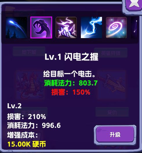 最强单体攻击技能(小范围),攻击距离只有2格,但是攻击力突破天际。如果要打龙BOSS一定是不可或缺的技能。