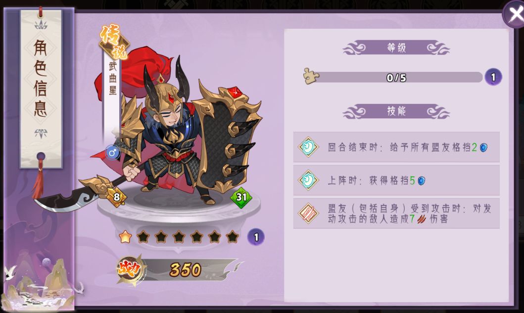 1.【武曲星】超高血量成长,拥有超高的格挡值,并且每回合赋予盟友格挡,并且能够为盟友反伤攻击单位。