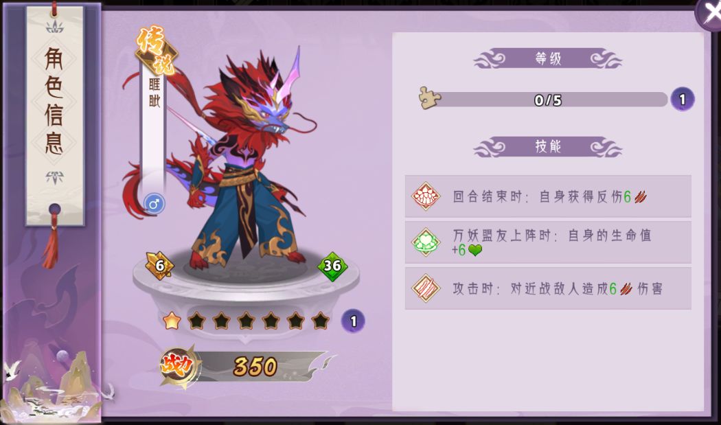 2.【睚眦】超高血量成长,每回合获得反伤,攻击可对所有近战造成额外伤害。