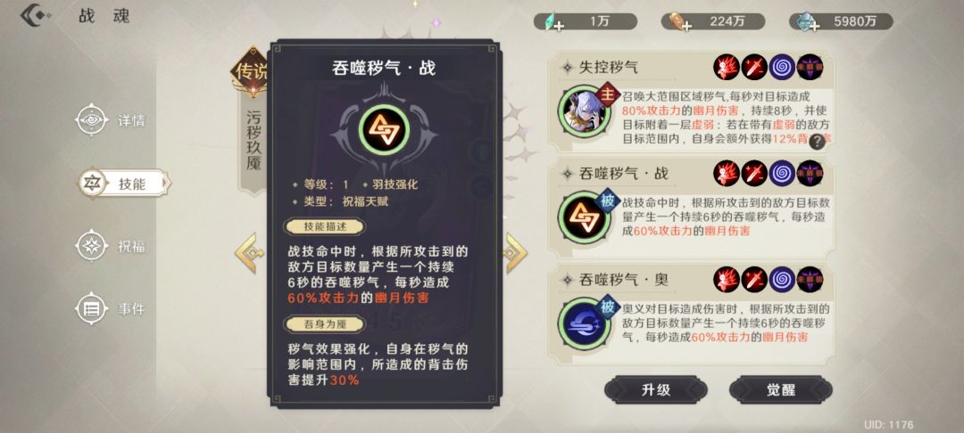 战魂卡可以选3智3力,觉醒等级高或者品质等级高的。卡牌的附加属性是开局就给的,觉醒越高、品质越高加的基础属性就越多,推荐带一张污秽玖魇,在开局能拿到轮回袭击和这个祝福的话就可以告别刮痧了。这张卡应该是唯一一个战技命中时触发的效果,别的卡都是使用战技时释放一次。