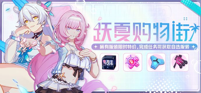 6.7版本更新后~7月6日04:00期间,「跃夏购物街」活动开启。舰长参与版本限时活动,可领取「缤夏粲忆」服装自选箱、三分结晶、相转移镜面等奖励。同时,活动商店「往夏辰光」开启,16款人气夏装限时返场,舰长可使用水晶选购。「魔法少女西☆琳」、「魔法少女芙乐艾」等八款精选服装也将特惠返场,舰长可使用特殊服装兑换券选购。