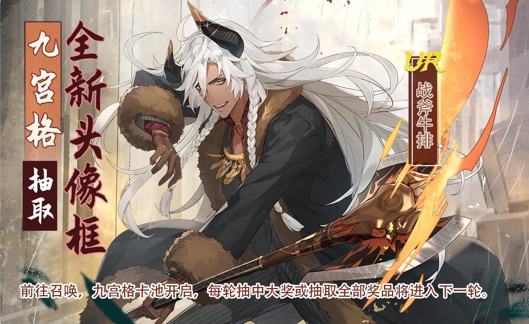 活动描述:活动期间,御侍大人使用指定道具抽取九宫格卡池有几率获得UR战斧牛排神器挑战券、UR级神器挑战券等豪华道具,御侍大人一路升级吧!