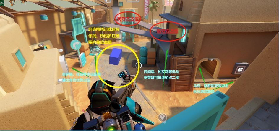 后半段对于进攻方来说则是尤其难以进攻的路段,需要不同职能英雄通力协作: