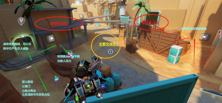 这一段是进攻方最有挑战性的路段,进攻方需要利用好掩体,做好协同,一鼓作气赢得团战胜利。