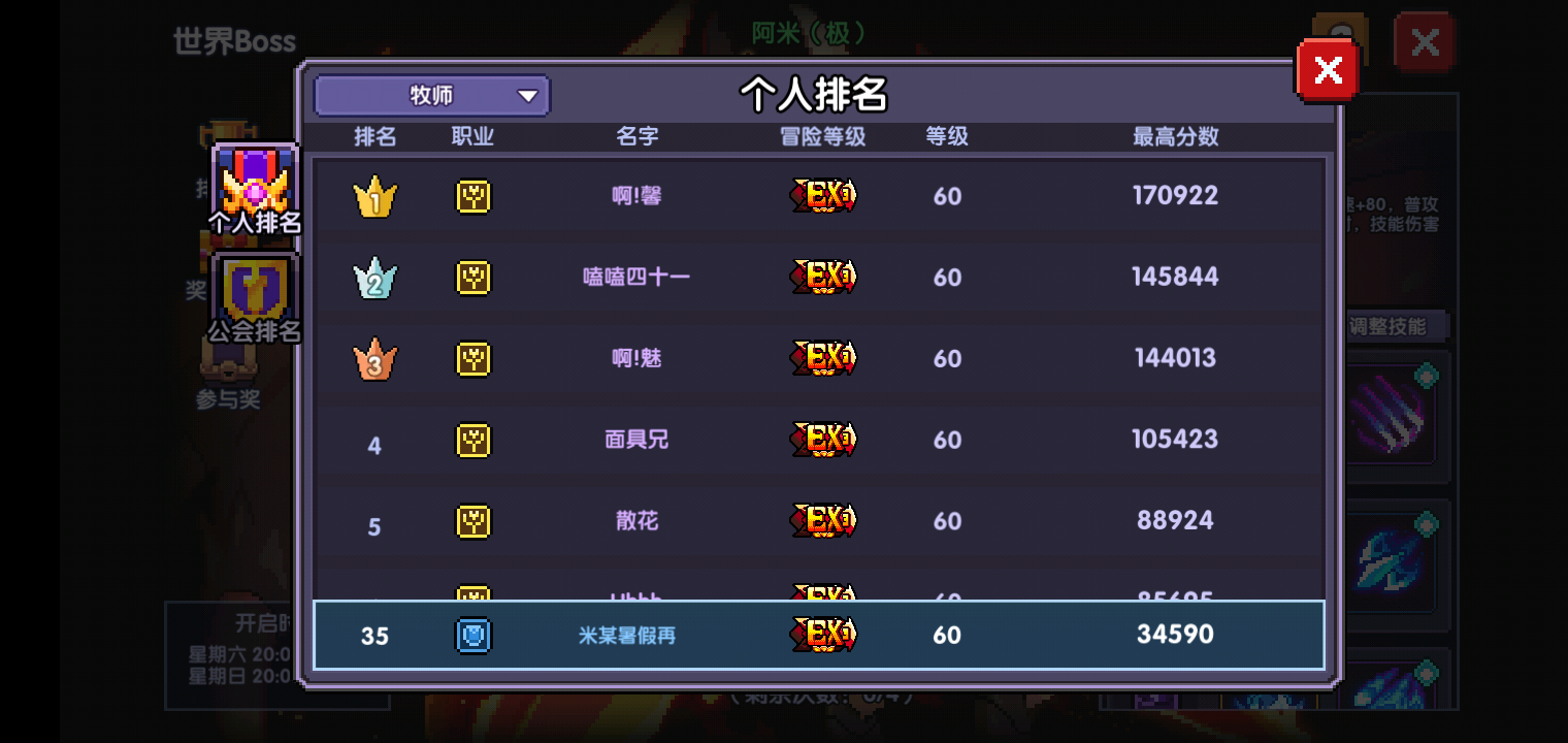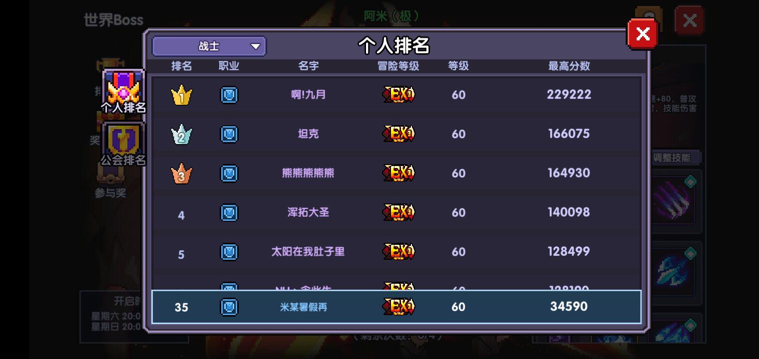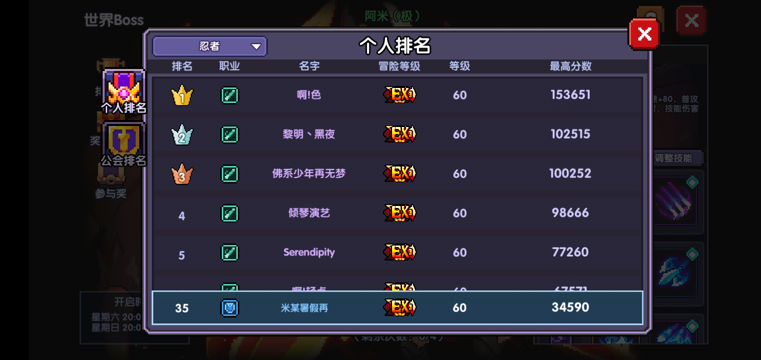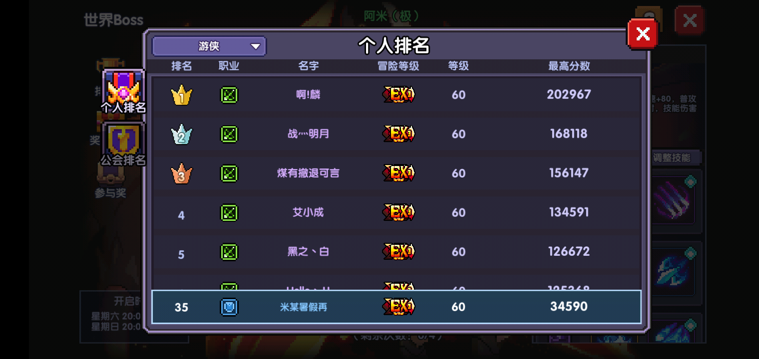 从图中可看出今天世界boss又是阿米公会一家撑五柱子,也是见怪不怪了。。。