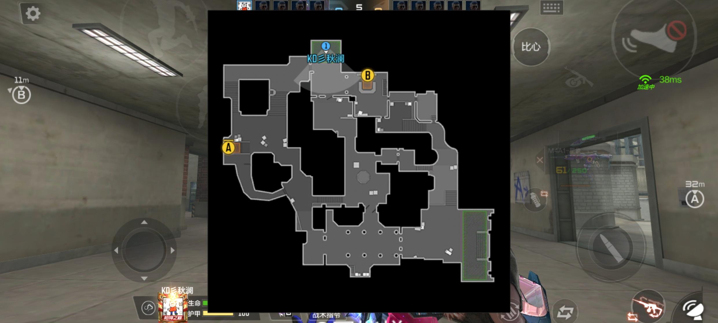 接下来是潜伏家封A进路烟雾,对这中路大门上的柱子丢就可以了,视野上可给防守A包点的人带来巨大干扰,开局就打掉狙击一半。