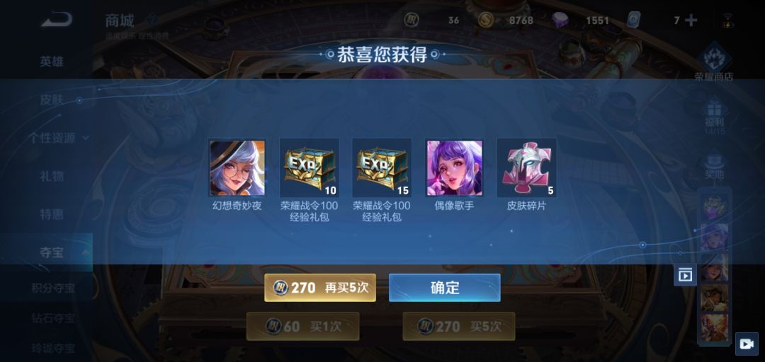 1.每日暖心福利单抽出666钻石 2.2022共创之夜直播抽奖得到勇者皮肤 3.玩家卡活动抽奖得到伴生皮肤 4.积分夺宝五连抽得到1勇者皮肤1史诗皮肤 5.免费领的繁星甜梦礼包开出伴生皮肤