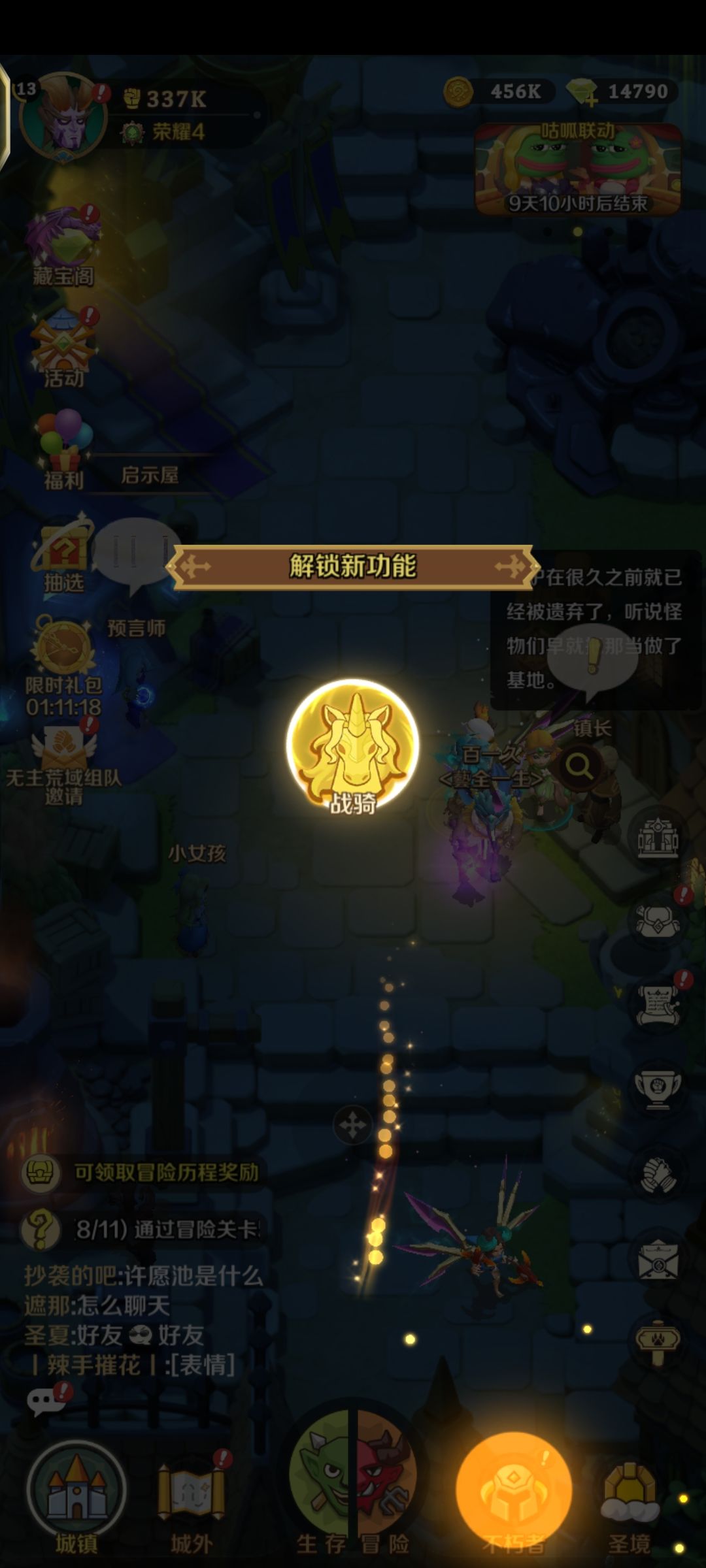 获得坐骑后337k战力,没通关前只有320k战力,对于一个手残党来说,这个战力通关,我灰常之骄傲(仰头)