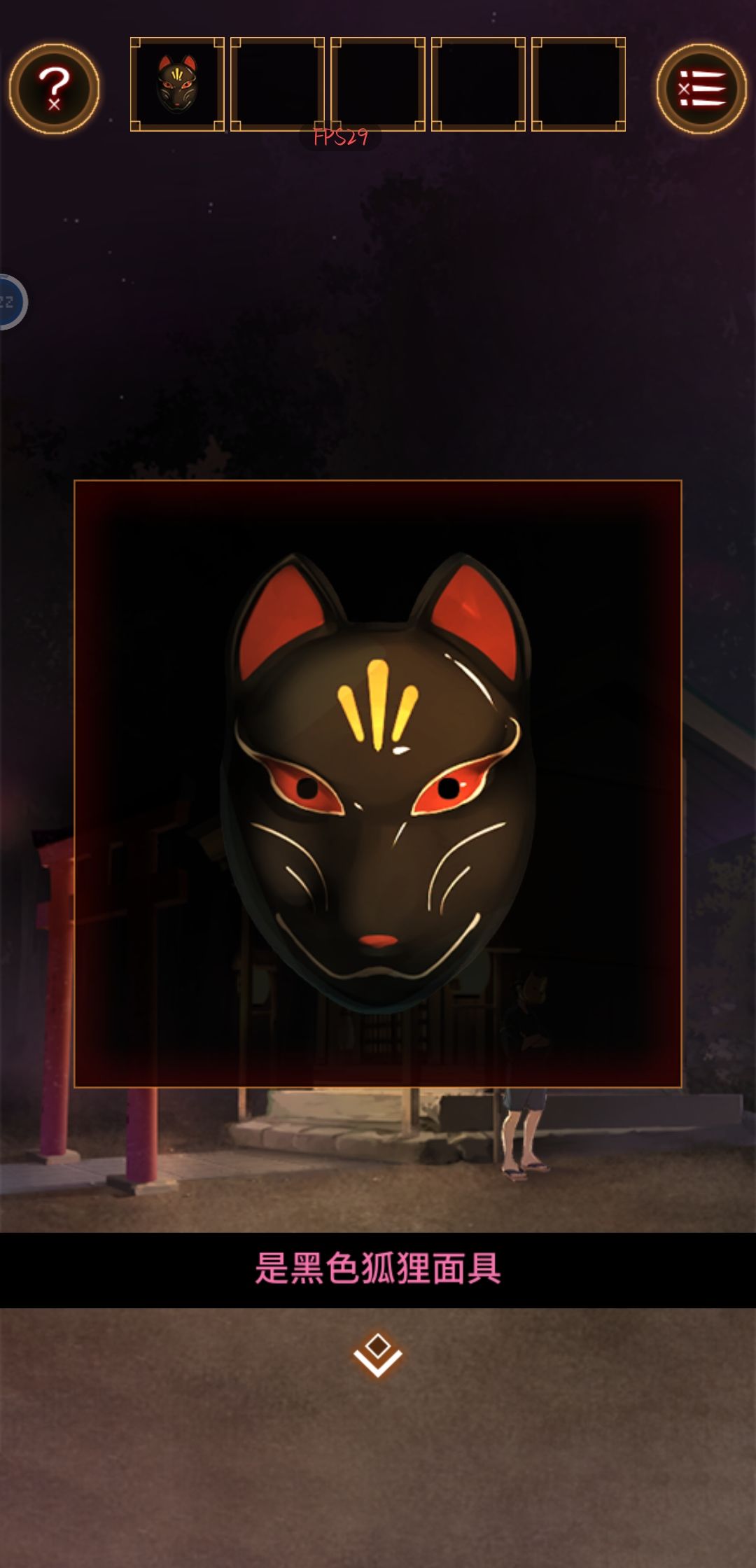 与带狐狸面具男孩对话,获得黑色狐狸面具。