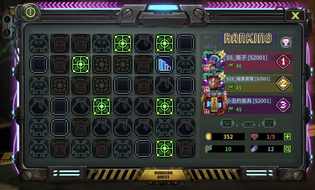 每一层有10个袋子(免费或花钻、钱买资源),10个怪物(打赢拿奖励),10个玩家敌人(打赢拿奖励)。此外还有6个复活点、4个升级点、7个空洞和1个楼梯。