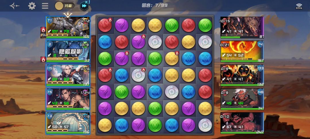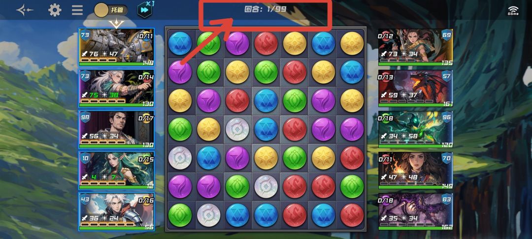 进场后,我方先手,为第1回合,我方回合结束后敌方行动,回合数显示为2/99,结束后进入我方回合3/99,然后又是敌方的4/99……以此类推,也就是说,我方回合永远是奇数回合,而敌方永远是偶数回合。