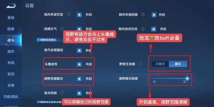 6⃣️打开视野提示不仅能看到自己的视野范围,也能方便藏自己视野,蹲人gank必备;