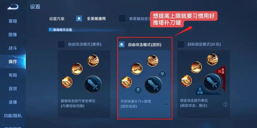 1⃣️补刀推塔键,想提高上限,一定用好!!