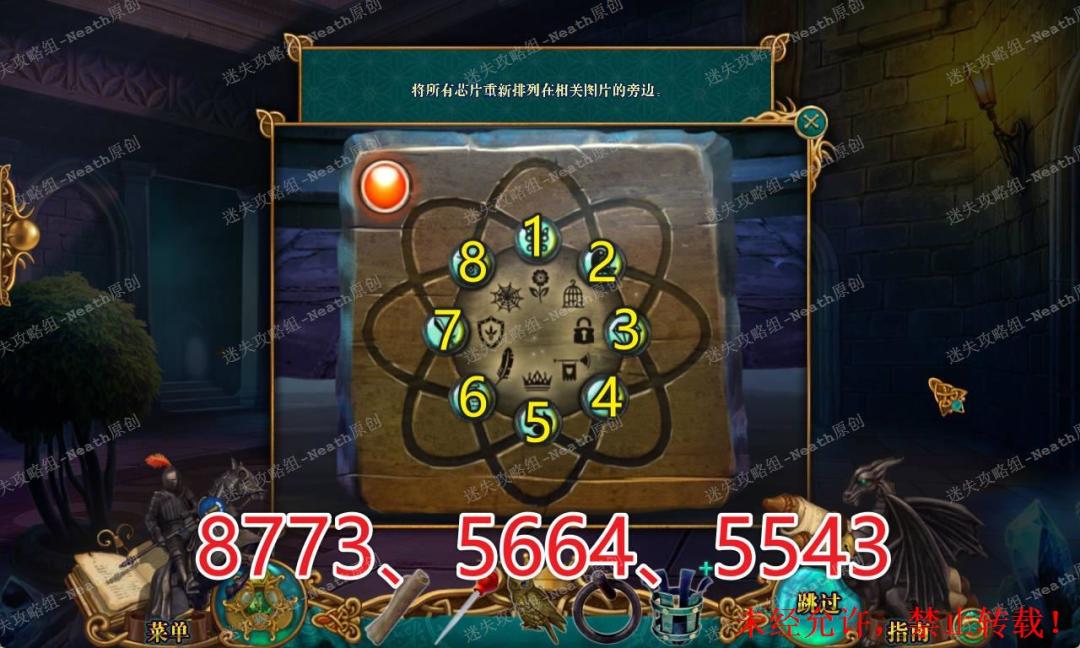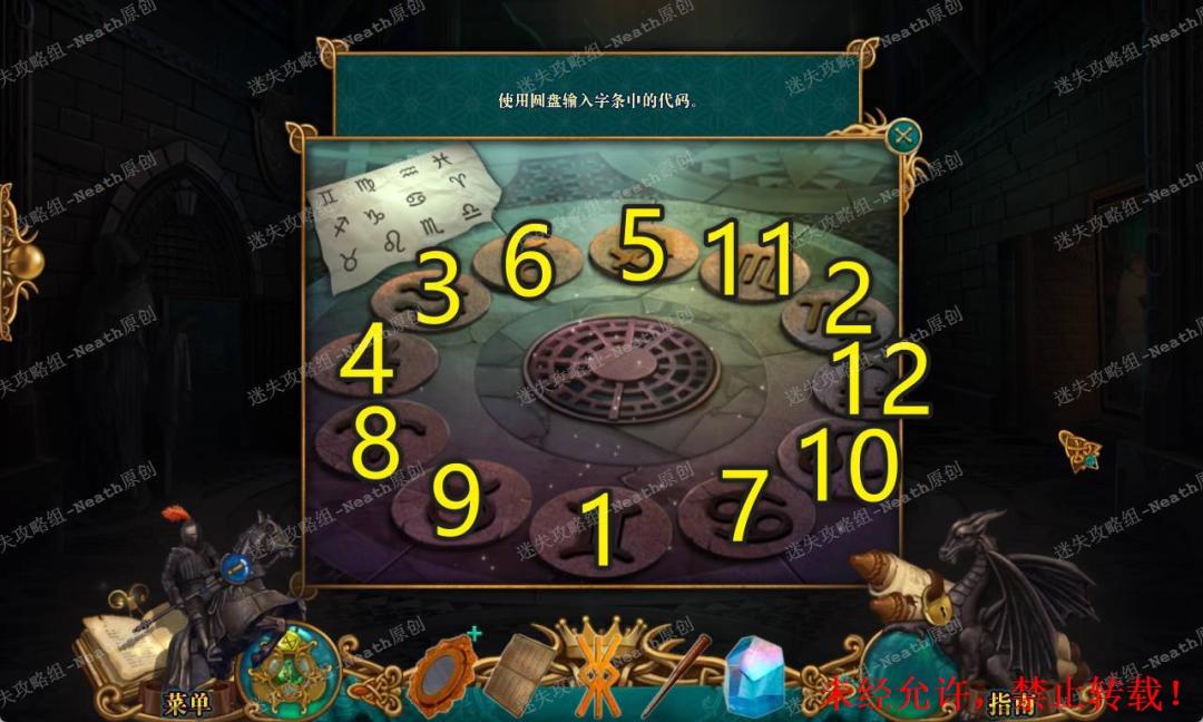 104、前往水晶室,把【水瓶座符号】和【狮子座符号】安装到地板上,再放上【星座提示】,根据星座提示打开地板,下图有标记数字的简易答案,完成后进入岩石路。104 104.1