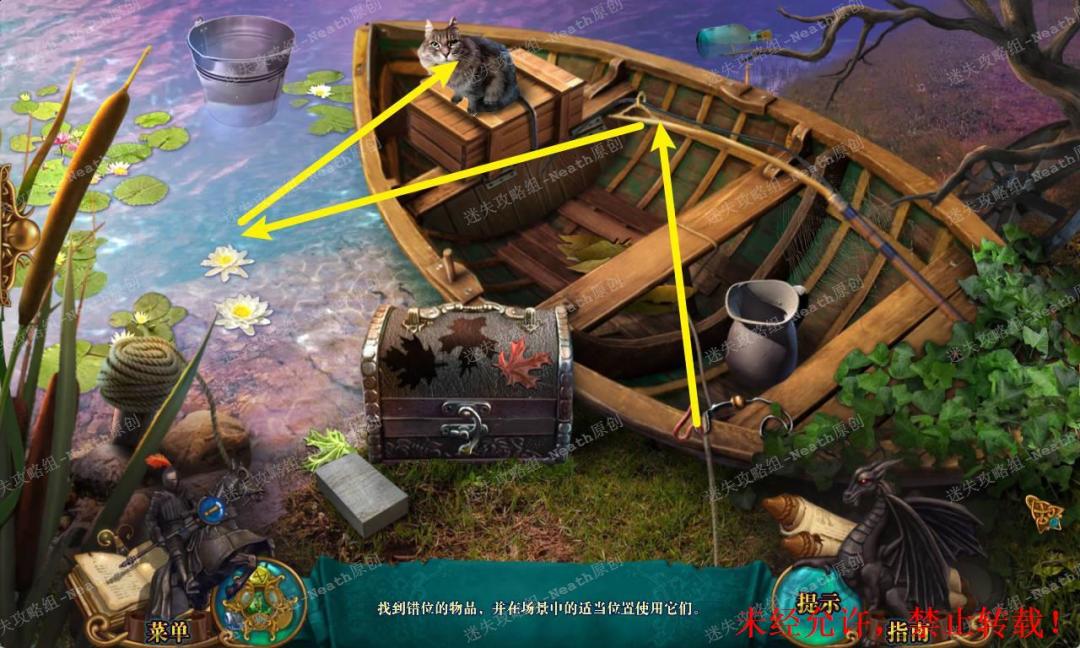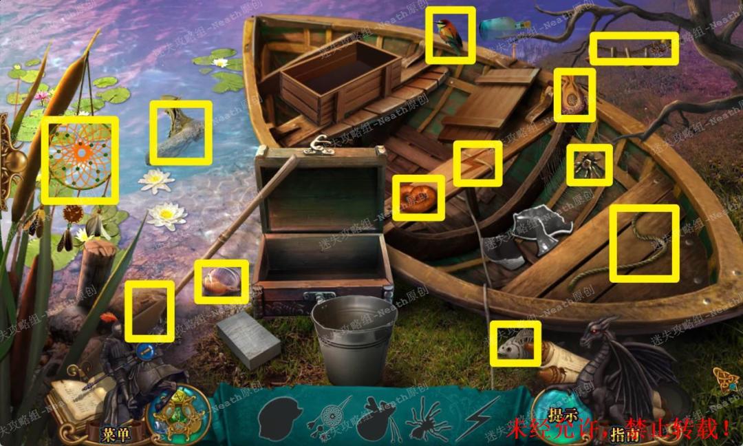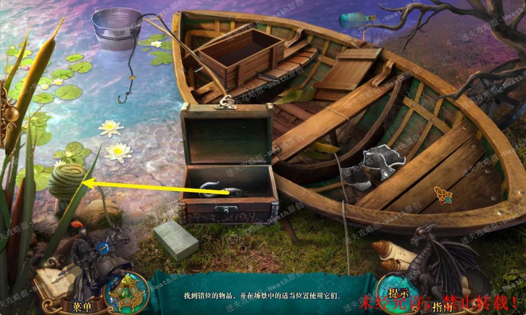 144、回到湖岸,点击右边杂物堆进入寻物游戏,所有物品位置如下完成后得到【绳子】。144