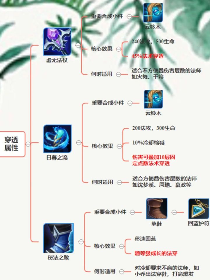 1⃣️穿透属性装备:虚无法杖、日暮之流、法穿鞋;