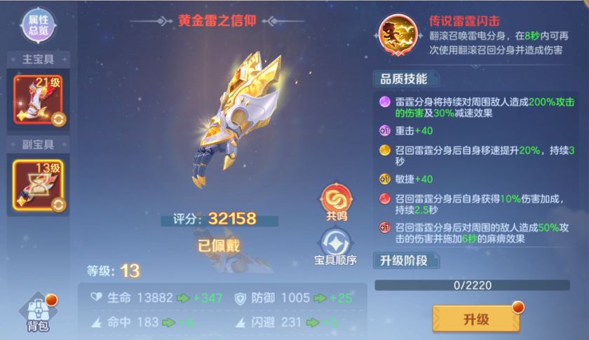 新的副宝具「黄金雷之信仰」将进一步增加天行者翻滚后的额外能力,翻滚后将会召唤雷电分身,在8秒内可再次使用翻滚召回分身并造成伤害。让天行者们闪避输出两不误~