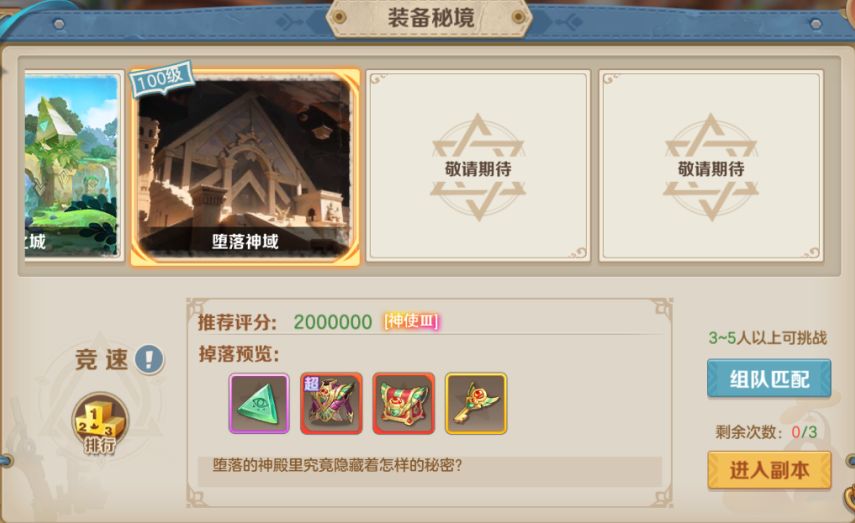 天行者可以在玩法-装备秘境-副本中选择新副本「堕落神域」,除了会爆出更高阶的装备外,还会额外掉落养成进阶素材,帮助天行者的实力更上一层楼!