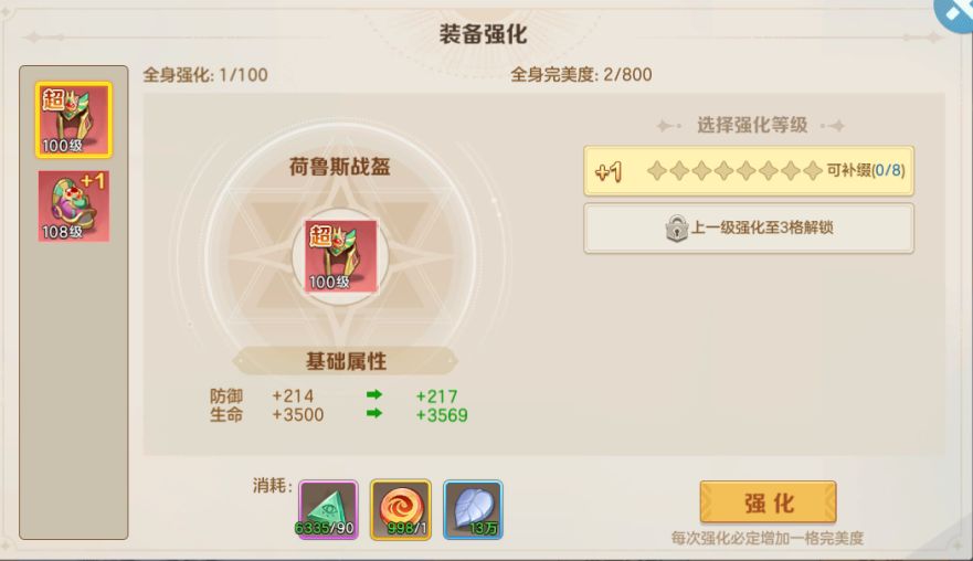 百级装备强化界面