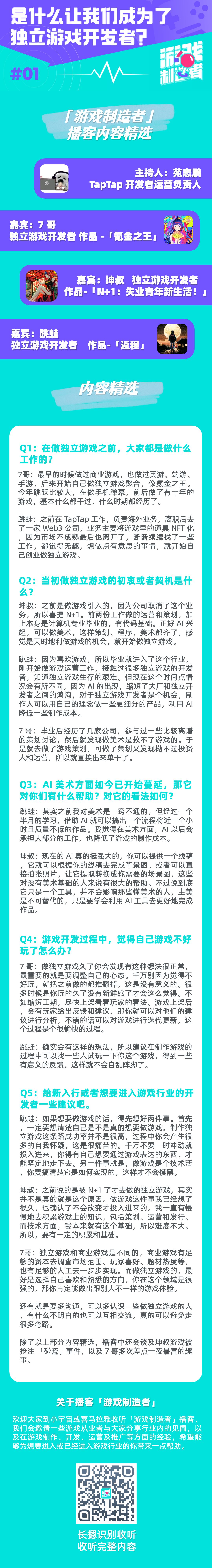 一起来看看三位独立游戏人对这些问题的分享,图片底部扫码可收听完整音频内容。