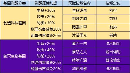 二、天赋技能介绍两大基因觉醒天赋共计分为8种
