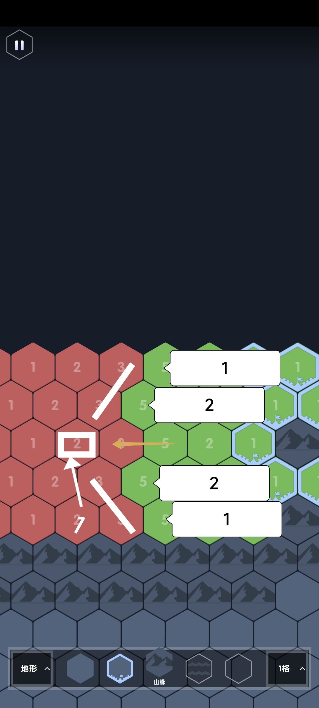 在解决这个看似简单的问题之前,我们先要了解一个ai的加点小知识:疯狂ai在点数充足的情况下,需要防守时加点大小正好可以抗下是它所有接壤敌方格合力攻击而不失地,我们下文称为防守型加点